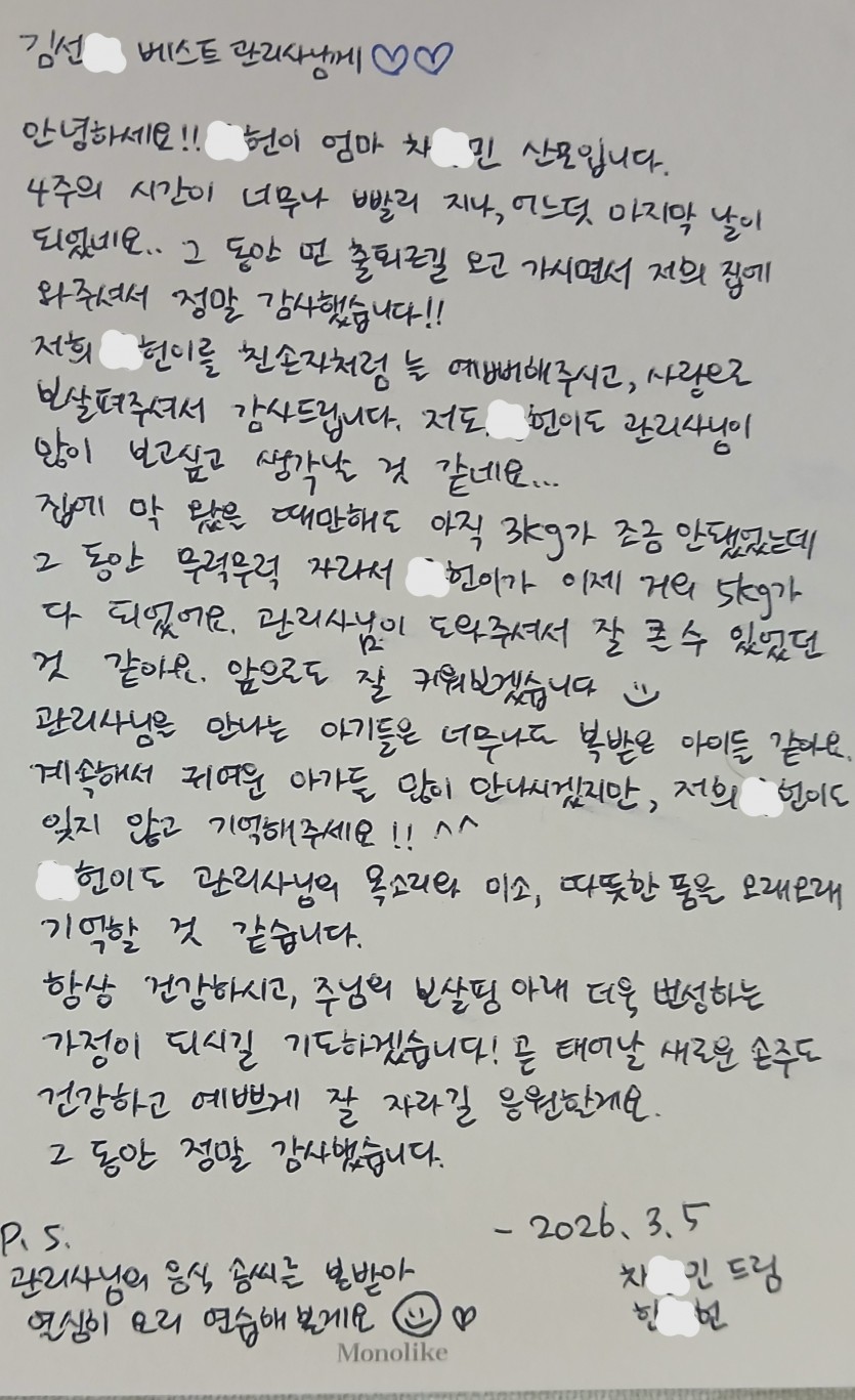산모님이 마음을 전한 편지